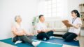| 肩甲骨の開閉運動 | 肩甲骨まわりの血行を促進し、呼吸を深くする。 | 1. 肘を曲げ、指先を肩に置く。 2. 肘で大きな円を描くように、前から後ろ、後ろから前へ回す。 |