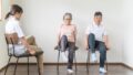 | お尻(梨状筋)ストレッチ | 骨盤まわりの固さをとり、座り疲れを解消。 | 1. 椅子に座り、片足のくるぶしをもう一方の膝の上に乗せる。 2. 背筋を伸ばしたまま、ゆっくりと体を前に倒し、お尻が伸びるのを感じる。 |